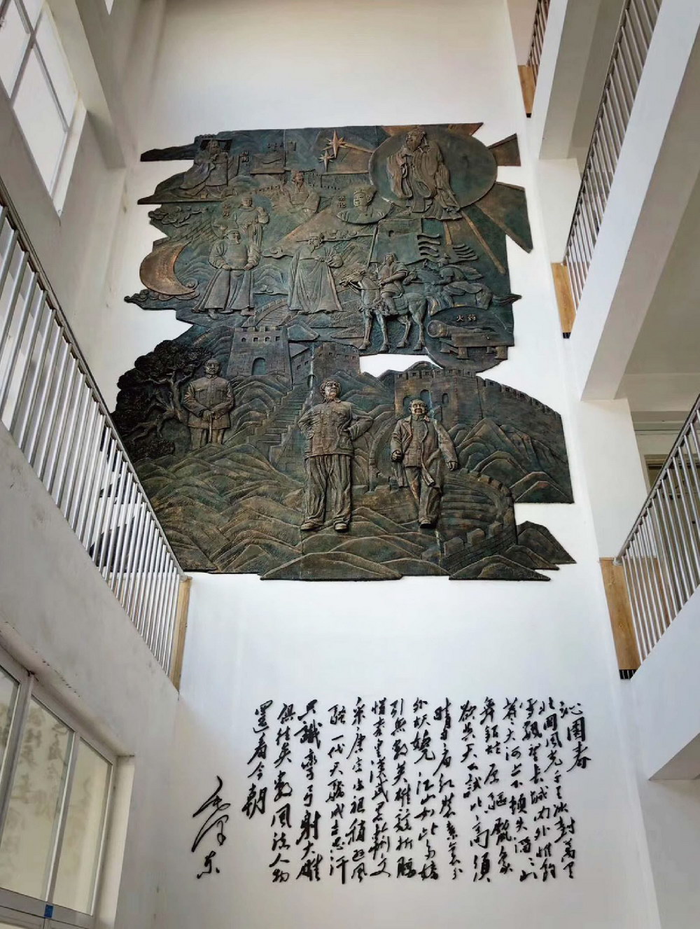 天津津南雙港中學(xué)大廳鍛銅浮雕壁畫
